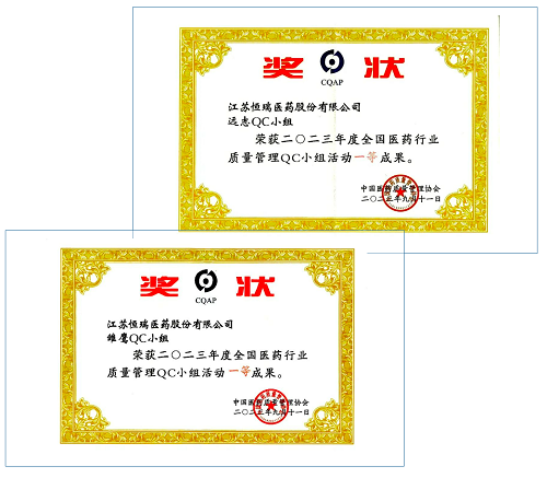 G22恒峰医药荣获2023年度全国医药行业质量管理QC小组活动一等奖